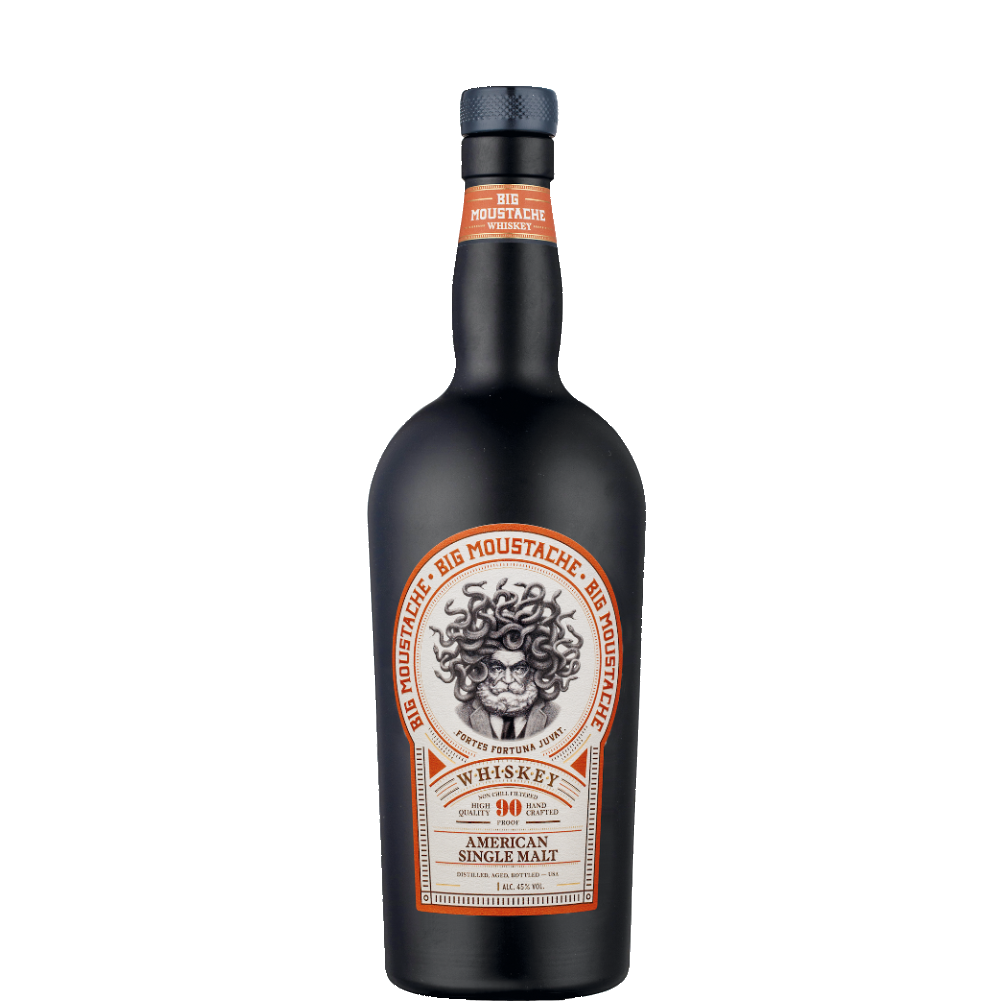 Big Moustache American single malt è un whisky single malt ottenuto da orzo distillato in colonne e maltato a terrain modo tradizionale.Dal colore ambrato scuro. Al naso di medio corpo note fruttate e malto, al palato fruttato con sentori di cioccolato fondente e nocciola.