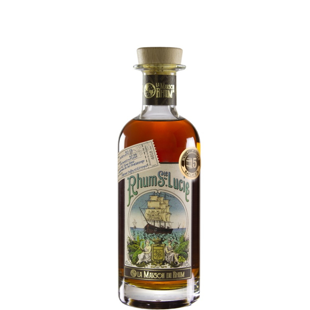 Situata all’estremità orientale dei Caraibi, Santa Lucia è una paradisiaca isola delle Antille. La distilleria, anche essa chiamata Sainte-Lucie, è stata costruita negli anni 70, utilizza tre ceppi di lievito ed è rinomata per la varietà e qualità dei suoi distillati. Il Sainte-Lucie 2013 batch #5 è un rum creato da melassa di canna da zucchero distillato nel 2013 in classico alambicco Coffey nella distilleria Sainte-Lucie, è invecchiato per 9 anni esclusivamente in botti di rovere ex- bourbon di primo riempimento prima di essere imbottigliato nel 2022 al 43% vol in 4618 bottiglie totali. Dal colore ambrato chiaro, al naso note di frutti tropicali, banana, una parte erbacea e mentolata. Al palato abbiano note fruttate , vaniglia, e sentori floreali , il finale è di media persistenza , fresco.