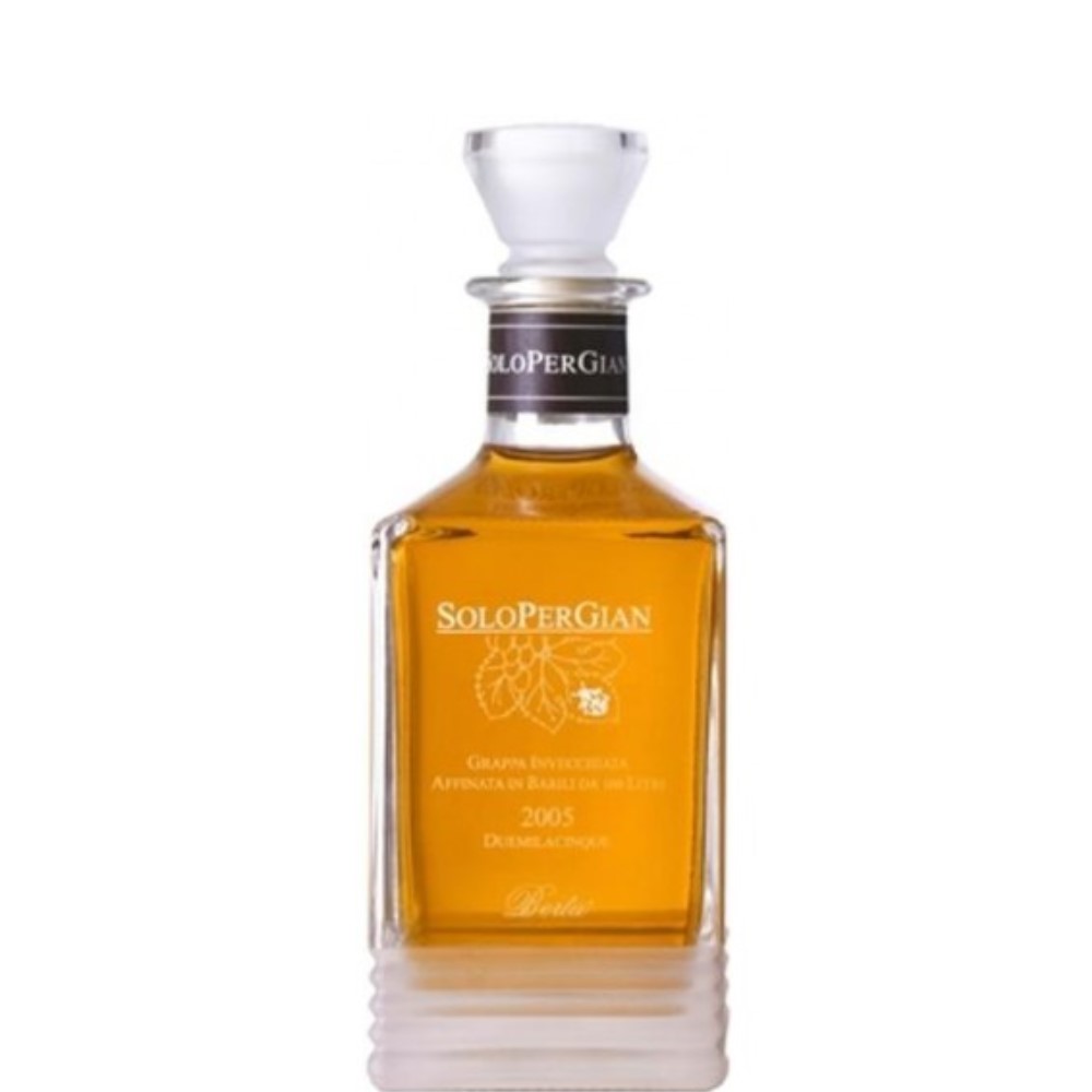 SoloPerGian è una grappa che nasce dalla sapiente unione delle nostre Tre Riserve, invecchiate per 10 anni nella nuova cantina in botti da 1200 litri e barili da 100 litri. SoloPerGian è una Fondazione non profit che sarà un supporto per gli artigiani in difficoltà e un aiuto per i giovani che vorranno apprendere un mestiere. È un brindisi alla storia di una famiglia, di un territorio. Ampio, delicato, avvolgente, con grande personalità. Fra le molteplici sensazioni avvertite spicca la frutta matura, i piccoli frutti di bosco, il cacao e la vaniglia. Ricco, avvolgente, si confermano le seducenti sensazioni avvertite al profumo.